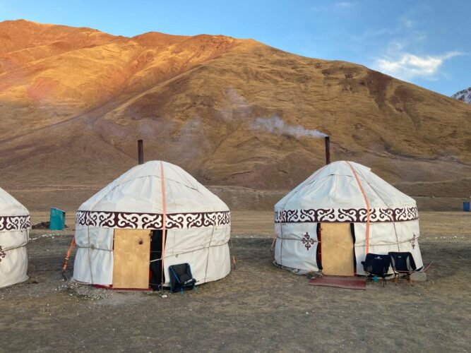 Maar we trekken al snel de woestijn en de bergen in. We gaan hiken in de omgeving van het Tudakul-meer en kamperen aan de oevers onder de sterrenhemel. Vervolgens trekken we richting het Nurataugebergte. In dit schilderachtige berggebied komen we tijdens onze wandeltochten door eenvoudige boerendorpjes en langs yurts waar nomaden leven bij hun kuddes. Restaurants vind je hier niet, maar we kunnen eten in homestays. Zo krijgen we ook meteen een kijkje in het dagelijks leven hier.