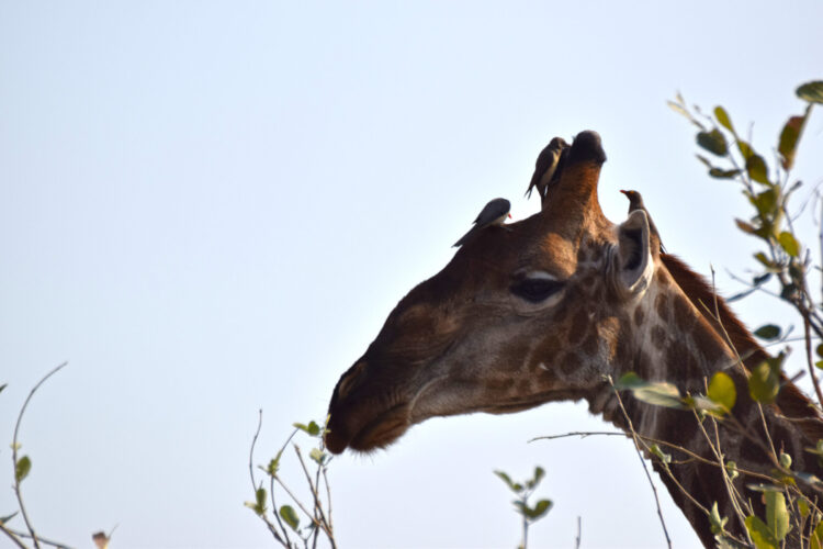 Andere gebieden in het land, zoals Etosha Park, bruisen juist weer van het leven. Giraffes knabbelen aan de top van een acacia. Impala’s steken met schichtige, maar o zo sierlijke sprongen de weg over. Tussen de struiken ontdekken we een chagrijnige buffelmama met haar jong. Een rij wrattenzwijntjes rent brutaal tussen de poten van een kudde olifanten, staartjes recht omhoog. Hoog in een boom hangt een wevervogelflat, het kunstig geweven nest van tientallen vogelfamilies. In andere bomen en struiken hangen eengezinswoninkjes, wiegend in de wind. Als we ons ’s morgens vroeg of bij het vallen van de schemering bij een waterpoel verschansen, komt het ene na het andere dier tevoorschijn om zijn dorst te lessen. Het voelt bijna als een film, zo onwerkelijk is het om al die dieren in het echt en zo dichtbij te zien.